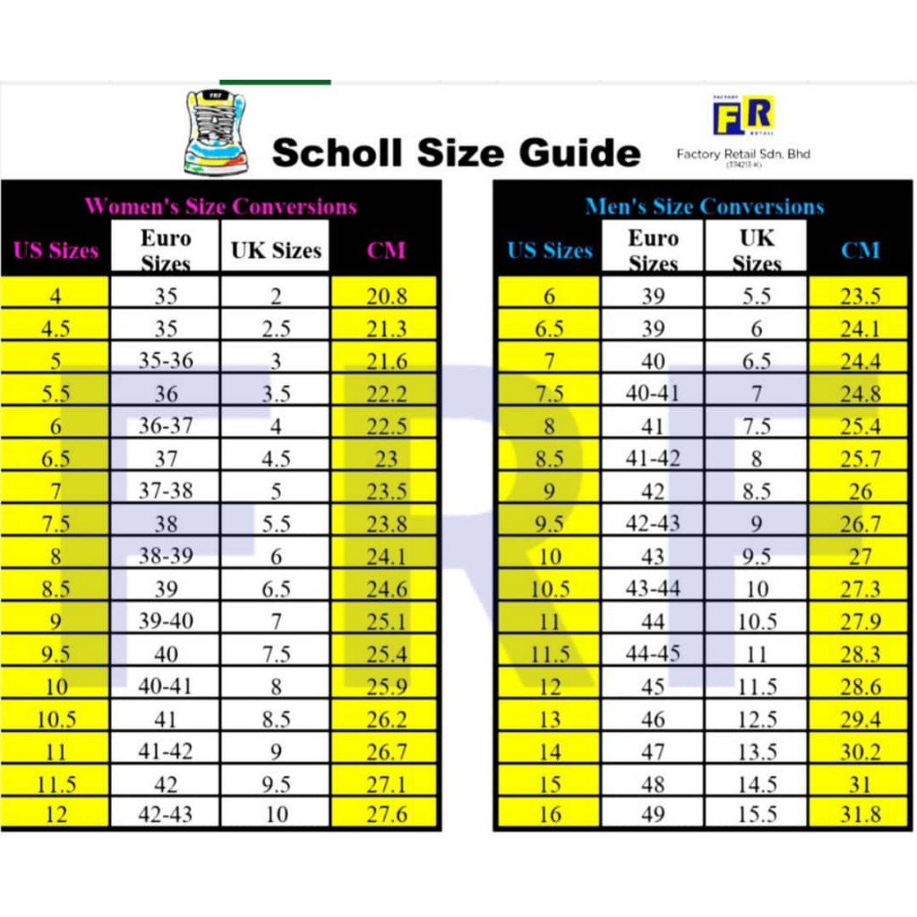 Dr Scholls Size Chart Brand House Direct